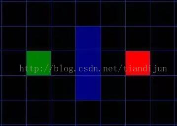 如圖中所示,綠色方塊為機(jī)器人起始位置A,紅色方塊為目標(biāo)位置B,藍(lán)色為障礙物。