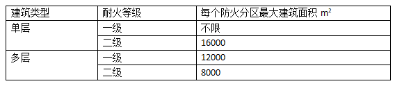 作為丙類二級耐火等級的單層廠房,每個防火分區(qū)的面積為8000㎡,多層廠房為4000㎡,當采用自動滅火系統(tǒng)時,其面積可以增加1.0倍。