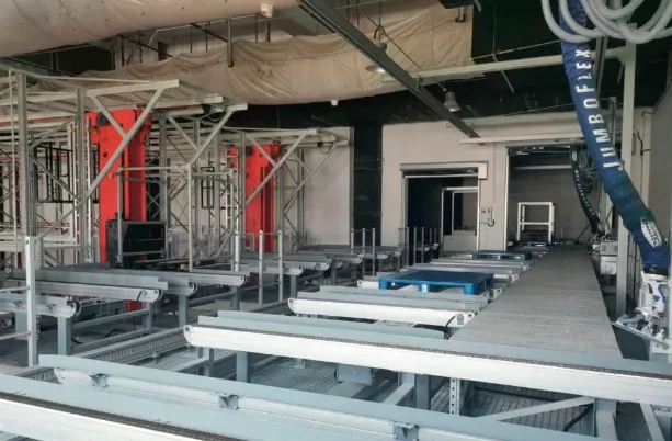 成品出庫分為整托盤出庫和非整托盤出庫兩種情況。整托盤出庫通過立體庫輸送機自動輸送到出庫口,進行集貨后出庫,需要拆盤的成品在二樓拆盤后,通過輸送線出庫。