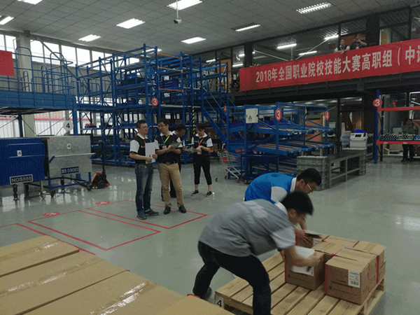 本次比賽共分三個階段,第一階段是方案設計階段,主要比試對物流解決方案的設計能力,包括入庫策略、上架策略、揀選作業(yè)、集貨作業(yè)、裝車策略、卸貨等過程,時間為3.5小時;第二階段是基礎知識測評,共30分鐘,有60道題目(題庫有300道題目),全面測試選手對物流基礎知識的掌握情況;第三階段是實施階段,要求選手在1個小時內(nèi)對所做方案親自動手完成。每個參賽隊4個選手,通過兩輪抽簽排定參賽賽位,確保了比賽的公平。