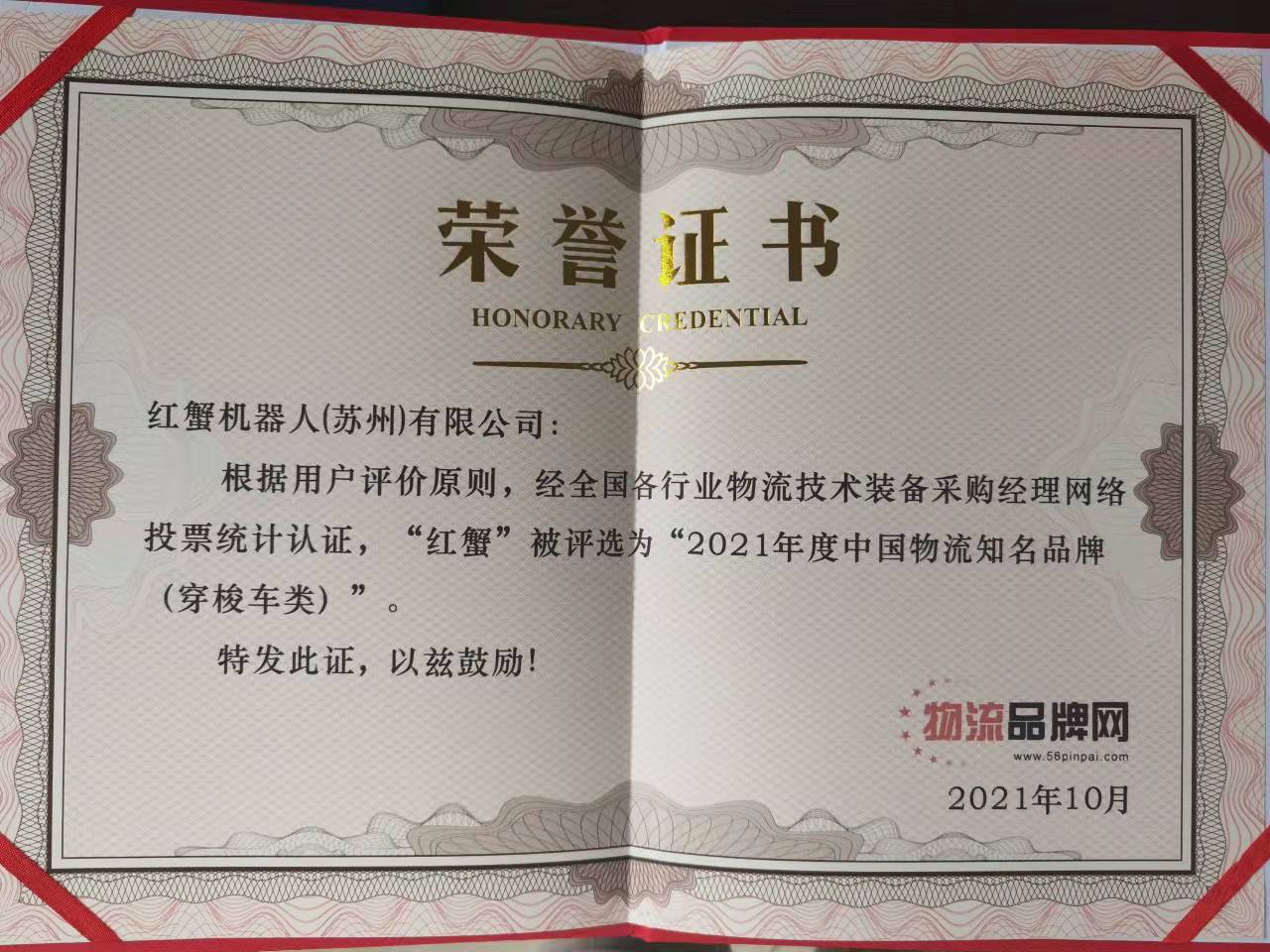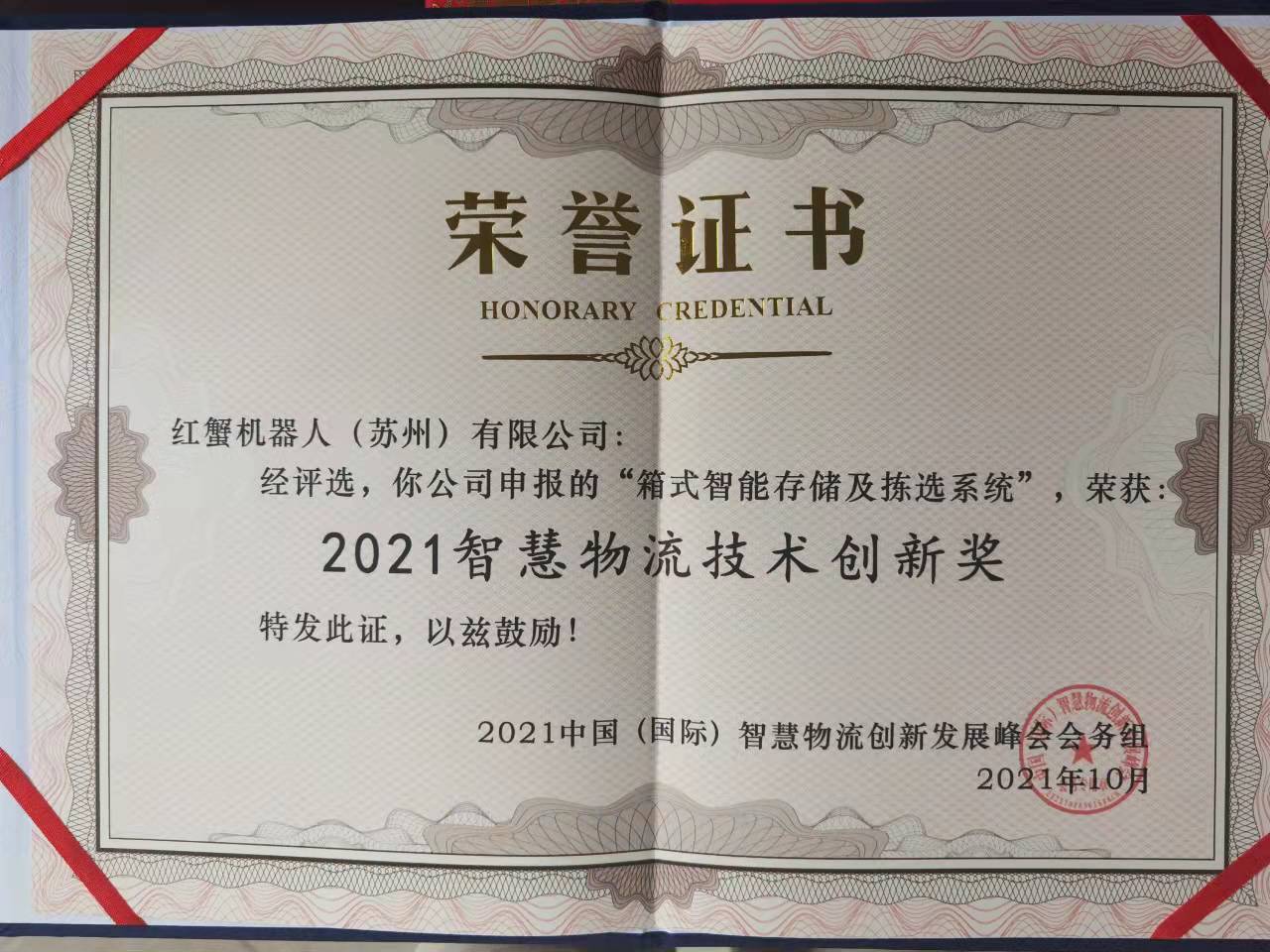 紅蟹憑借優(yōu)秀的創(chuàng)新技術(shù)獲得“2021智慧物流技術(shù)創(chuàng)新獎(jiǎng)”和“2021中國物流名牌獎(jiǎng)”。