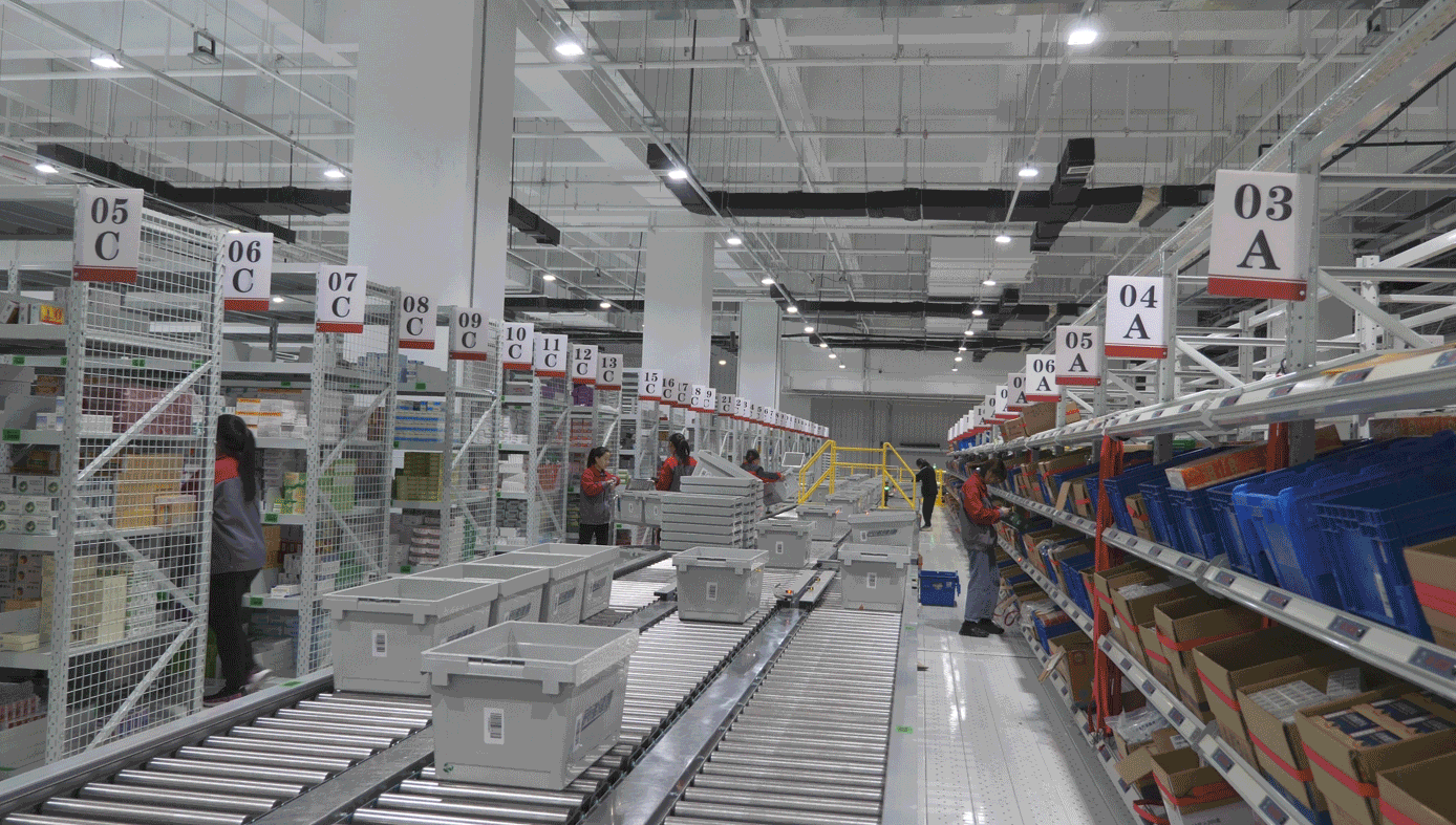 二期項目占地18000平米,負(fù)責(zé)整件貨物存儲和揀選,以及小整件存儲補(bǔ)貨及拆零揀選業(yè)務(wù)的拓展。主要物流設(shè)備包括:貨到人揀選系統(tǒng),其中紅蟹四向穿梭車20臺,揀選工作站2套,以及閣樓貨架系統(tǒng)、橫梁貨架系統(tǒng)、箱式輸送系統(tǒng)等。從而實現(xiàn)了藥品拆零業(yè)務(wù)的快速揀選,大幅提高了作業(yè)效率和準(zhǔn)確率。