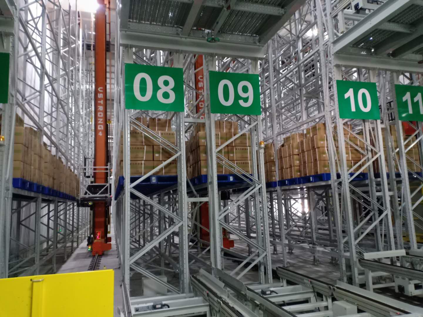 1)AS/RS區(qū):占地面積4020平方米,規(guī)劃有7個巷道7臺堆垛機。立庫合計可容納9016個托盤位。