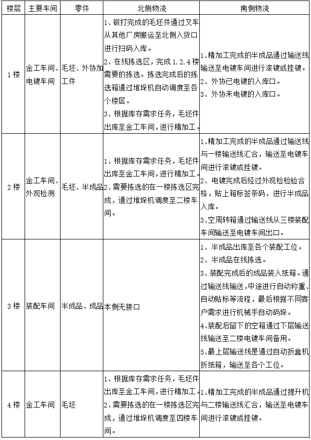 物流中心四層:毛坯出庫(整箱),加工件去一樓進行電鍍;